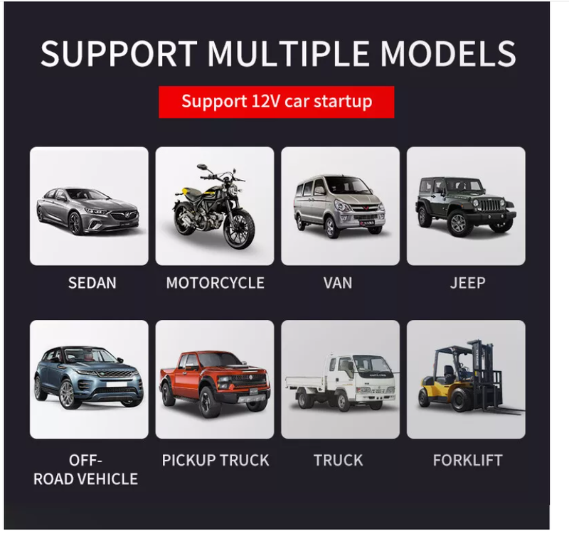 High Power Jump Starter:Our jump start power supplies are suitable for a variety of 12V battery vehicles including cars, motorcycles, RVs, ATVs, SUVs, tractors and boats. The high-power battery lasts for you.